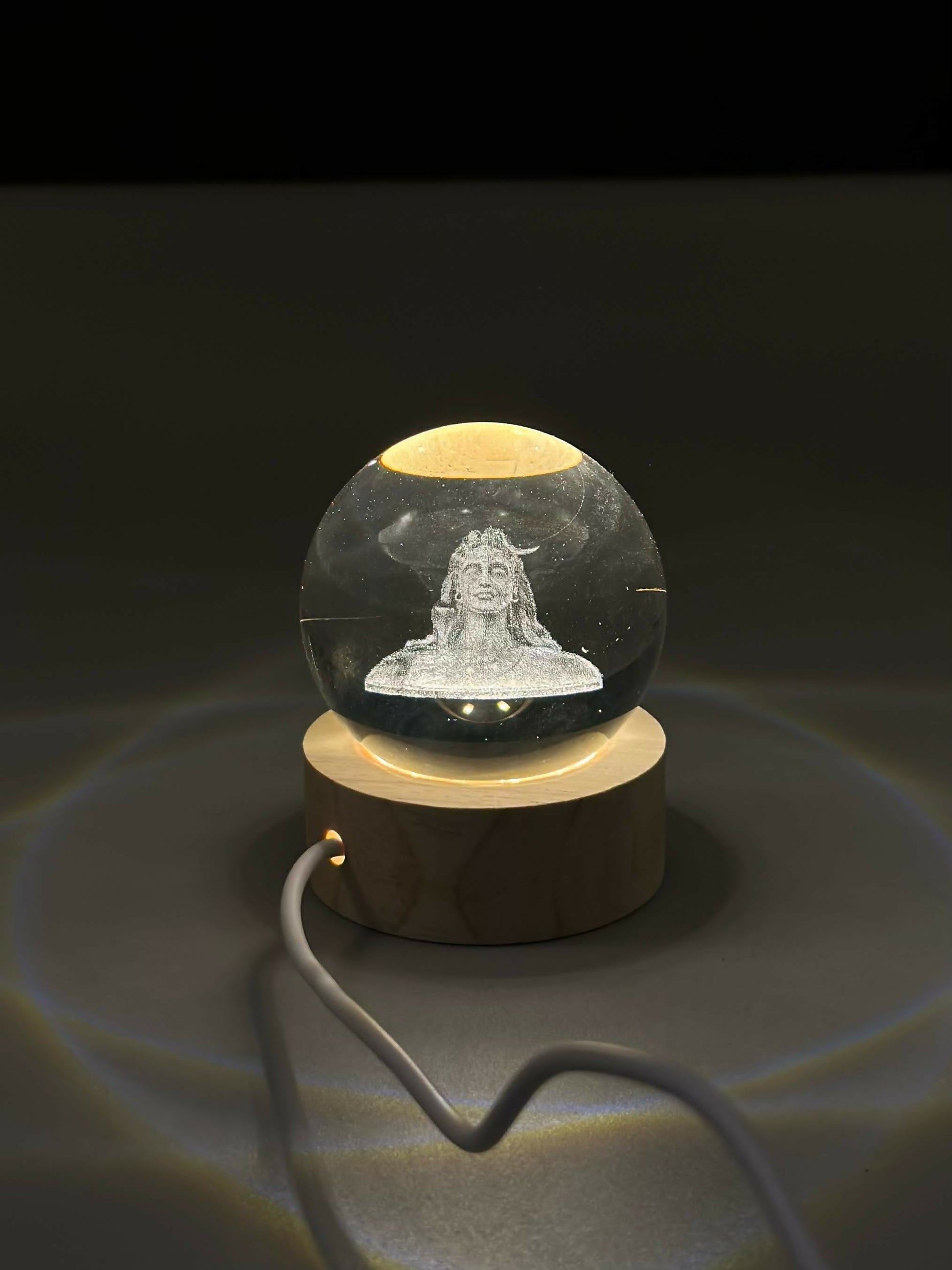 Bring a divine aura into your home with the 3D Crystal Shiva LED Night Lamp. This elegant crystal sphere features a finely detailed, laser-engraved image of Lord Shiva, the symbol of power, transformation, and serenity. Resting on a polished wooden base, the lamp emits a warm, ambient light through a USB connection, making it perfect for meditation spaces, living rooms, or as a sacred gift for loved ones. A beautiful blend of spirituality and craftsmanship, it creates a peaceful and inspiring atmosphere wherever placed.