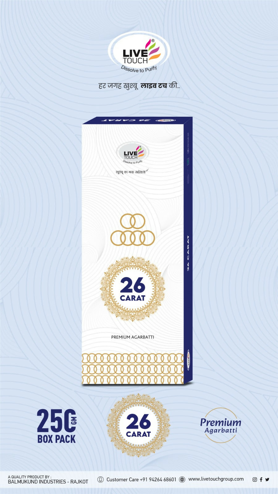 Live Touch 26 Carat Premium Agarbatti – Long-Lasting Luxury Fragrance Incense Sticks for Puja, Meditation & Home Freshness (250g Box Pack)